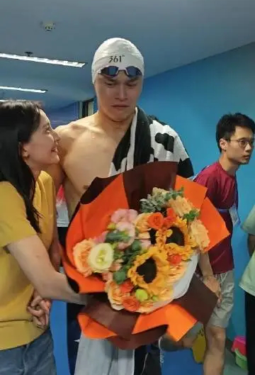 孫楊禁賽4年復出奪冠激動痛哭,妻子張豆豆現場送花安慰