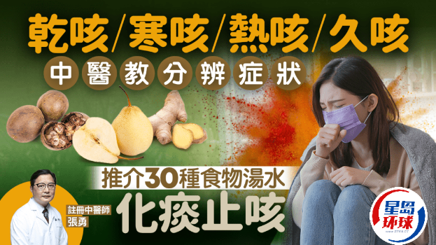 轉季時分天氣不穩定,患感冒、流感、新冠肺炎等病,持續咳嗽可如何止咳?注冊中醫師張勇表示,中醫治療咳嗽,需按照干咳、寒咳、熱咳、久咳、過敏性咳嗽等類型,辨癥論治。他教大家分辨5類咳嗽癥狀,并推薦30種食物及湯水食療,助患者化痰止咳。