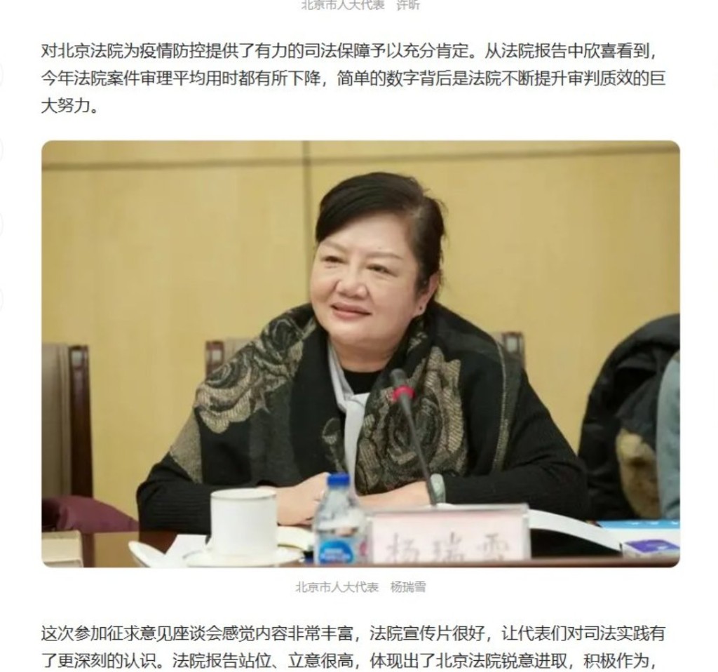 楊瑞雪曾擔任北京市人大代表