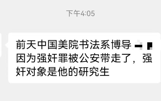 8月26日,浙江網民發布的多張微信群聊天截圖顯示,8月24日,中國美術學院書法系博導趙愛民因涉嫌強奸被公安機關帶走,女方是其指導的研究生馬某某(30歲)。