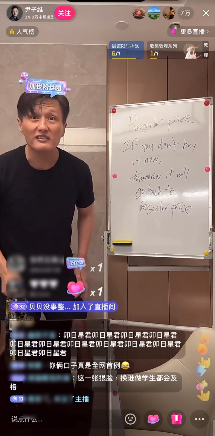 有網民日前在小紅書以“要笑死在尹子維直播間”為題發帖,并寫道:“求求了大家去看尹子維教徐冬冬學英文好嗎? 真的太好笑了!” 影片可見,身穿黑tee的尹子維站在白板旁邊,他對著徐冬冬怒氣沖沖說:“不要看手機”,徐冬冬解釋不是看手機,是看這個是寫什么,尹子維聞言后繼續發難,“你看我,不是我在跟你說嗎?”