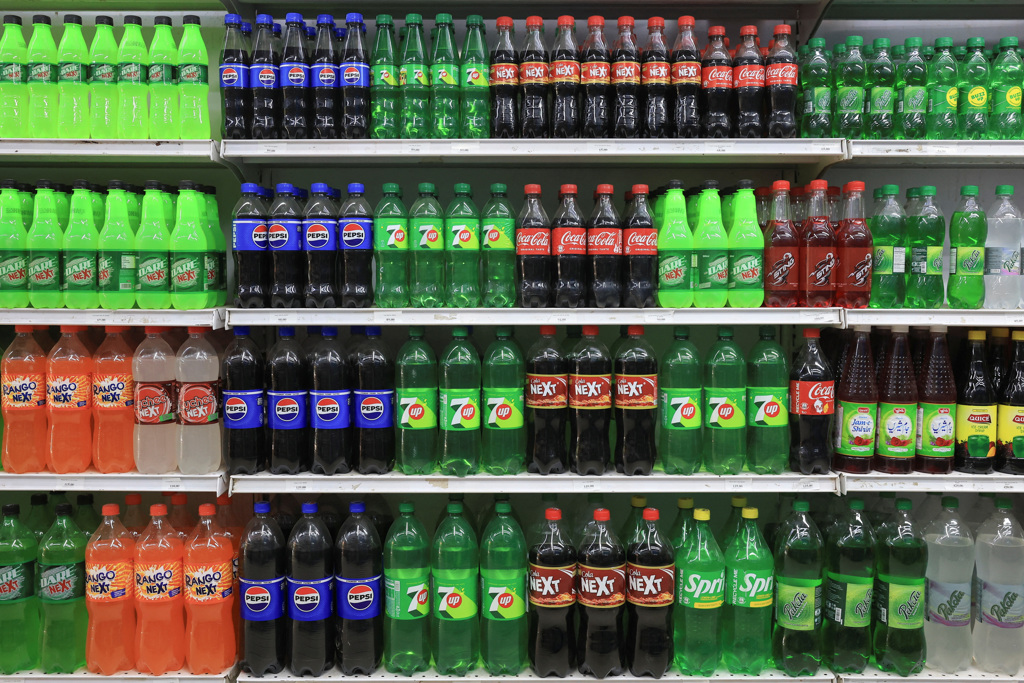 ▲巴基斯坦最大城喀拉蚩購物中心汽水貨架,2日仍可見到百事可樂、可口可樂鋪貨,但近期銷量萎縮明顯。(路透)