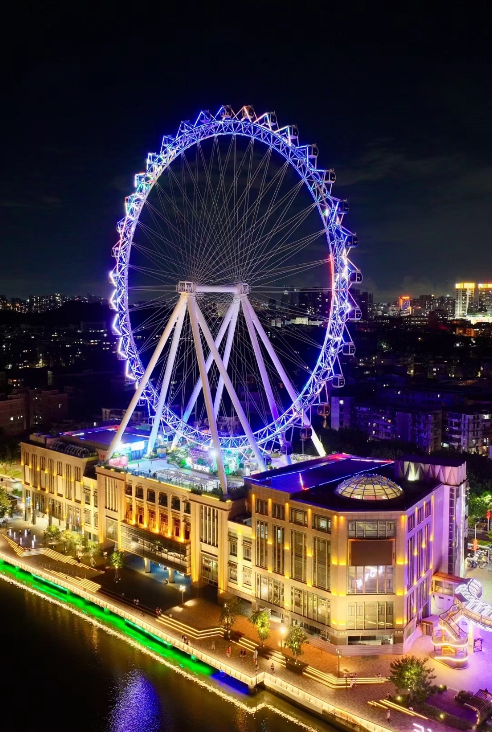 中山夜市好去處2024|6. 興中廣場 中山版「情侶路」岐江親水河岸、地標建筑幻彩摩天輪等旅游景點,晚上更大搞夜經濟。(圖片來源:小紅書@小俊航拍)