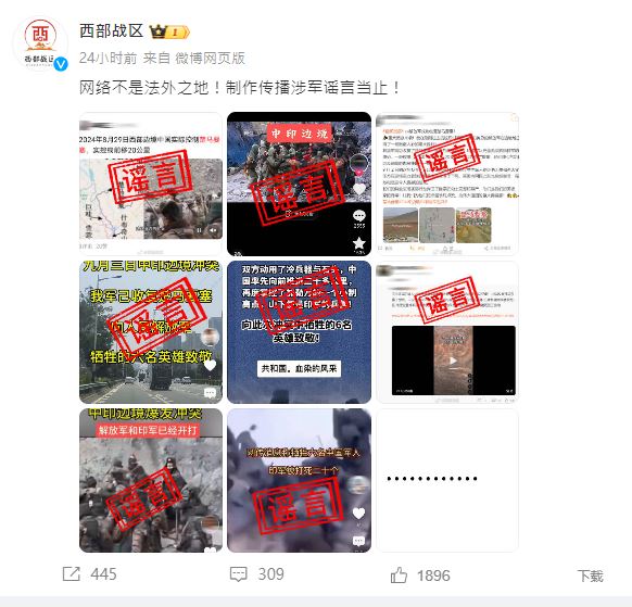 網傳中印邊境爆發沖突解放軍6犧牲,西部戰區:全部是謠言