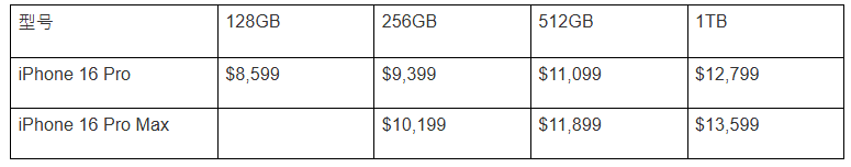 iPhone 16 Pro iPhone 16 Pro Max香港售價及開售北京時間