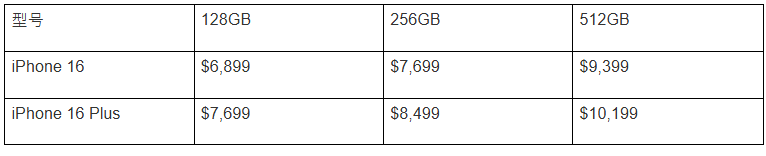 iPhone 16及iPhone 16 Plus售價及開售日期: