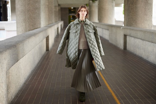 ▲Uniqlo : C 2024秋冬系列綠色車線外套/$699、茄士咩無袖短身針織背心/$399、綠色恤衫/$299、百褶半截裙$299、短靴/$299。