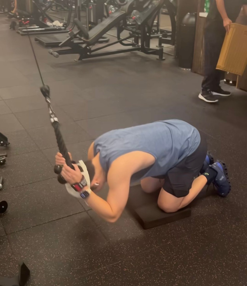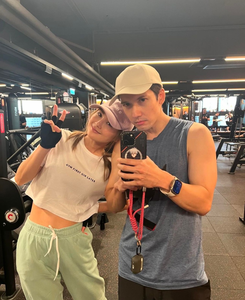 阿Sa在社交網貼出與關智斌置身健身室的短片