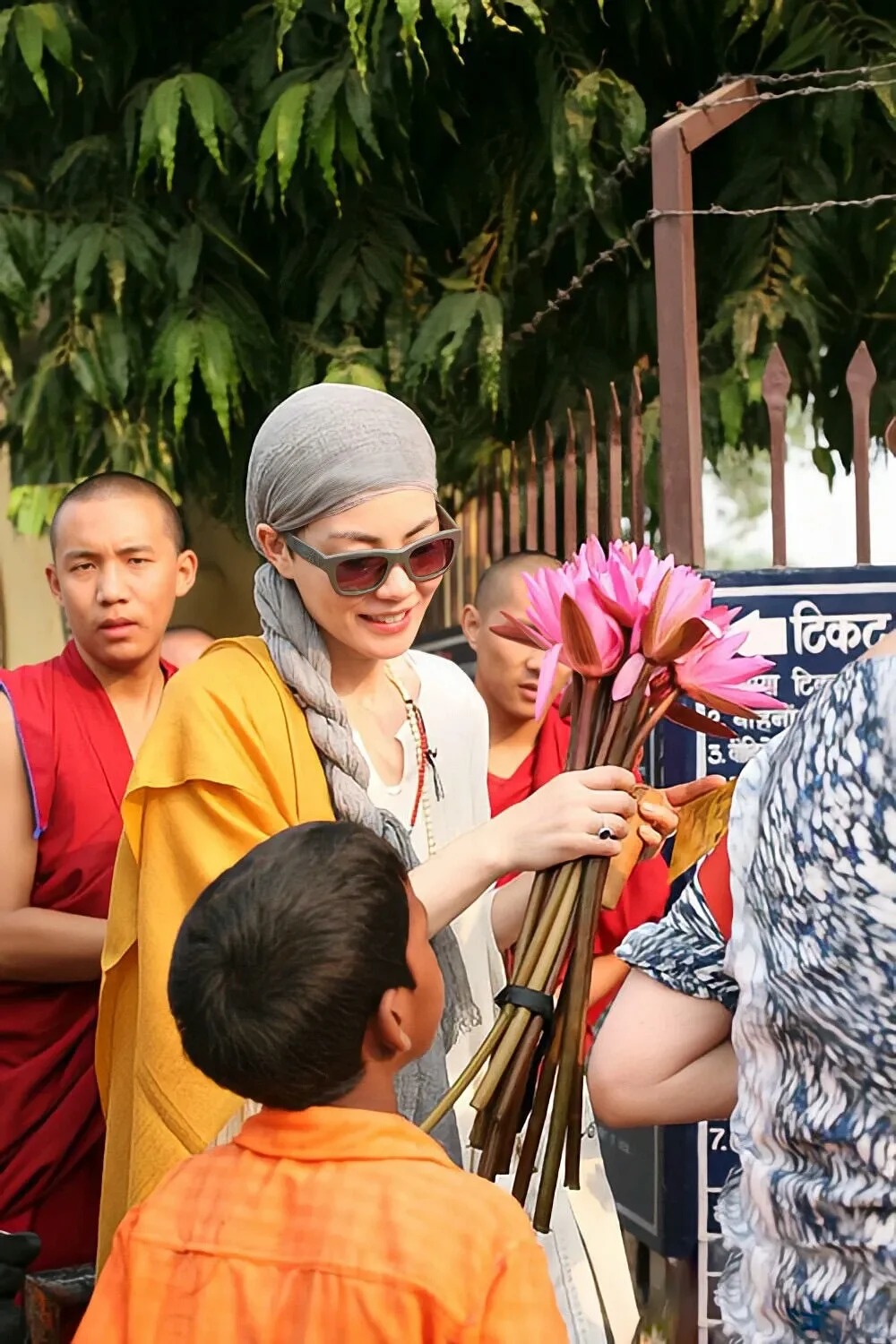 王菲穿上法衣到印度朝圣,參加佛教活動。