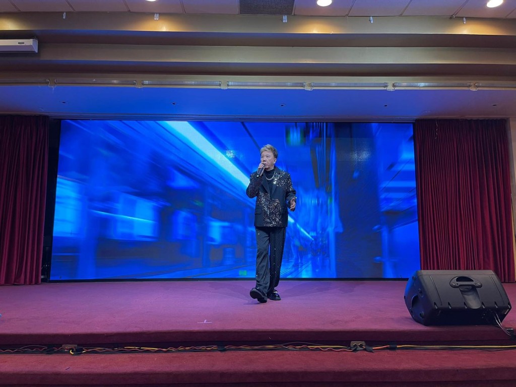▲尹光上月8日抵達加拿大,即在當地開騷,雖然溫哥華一站場地搞細,但尹光絕無欺場,穿上閃閃的黑色西裝獻唱,非常落力。