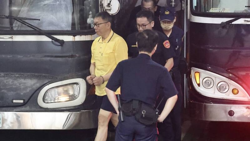 臺北地檢署今三度提訊,柯文哲戴手銬下囚車露出一抹微笑
