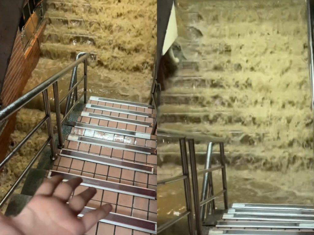 原PO在Threads發文表示,東吳大學榕華宿舍今晚出現明顯積淹水,讓打算出門吃飯的她完全出不了門,同時也忍不住錄下驚人畫面,比出掌心向上的手勢直呼,“怎么辦?我不會游泳”;從畫面可以看到,滾滾黃水不斷從樓梯淹到低洼處,若要強行通過肯定會弄得一身濕。