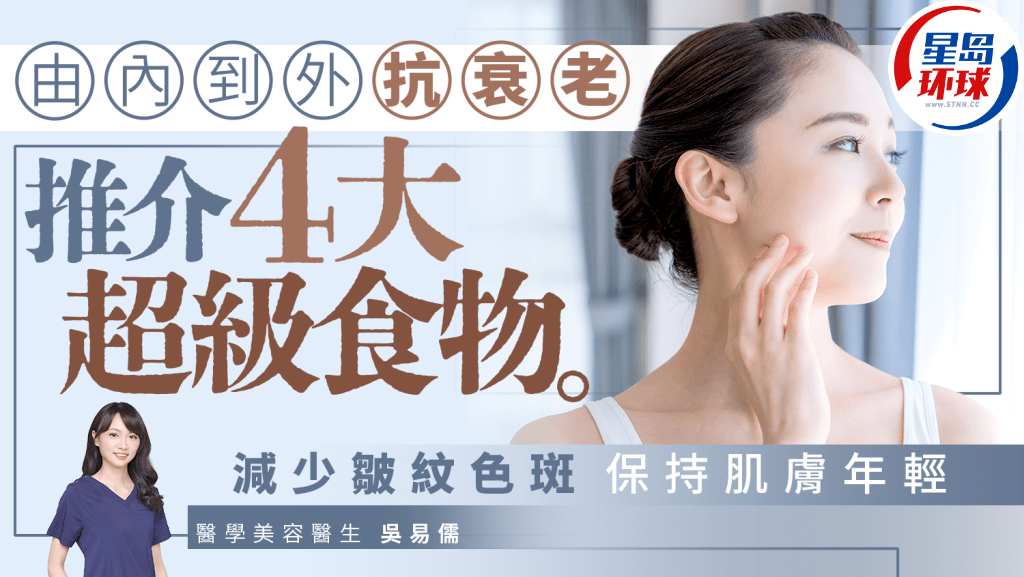 醫學美容醫生吳易儒在其Facebook專頁發文指,想保持肌膚年輕,不能只使用護膚品,平時也要補充身體所需的營養。她指出4種抗衰老食物,不止有效減緩細胞老化,更有效從內而外保持肌膚水嫩年輕。