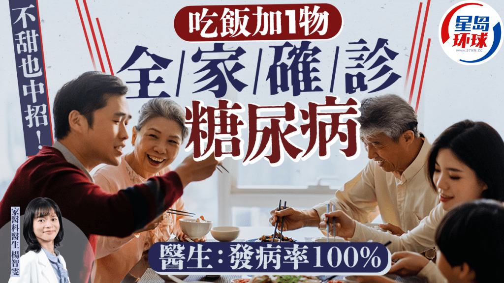她分享病例指,有一家人先后向她求診,最后通通確診糖尿病,發病率100%!細問之下,楊醫生發現他們一家人的飲食習慣大有問題,是令血糖失控的主因。