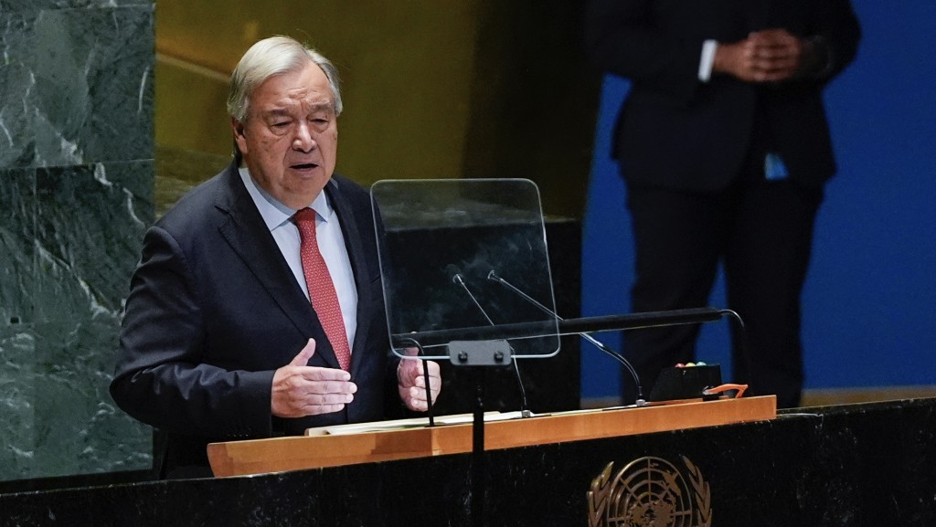 ▲聯合國秘書長周二在紐約舉行的第79屆聯合國大會上發表演說。 美聯社