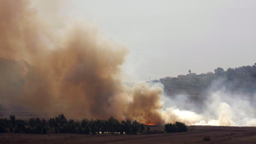以色列空襲令黎巴嫩南部汲淪谷地面冒起濃煙。
