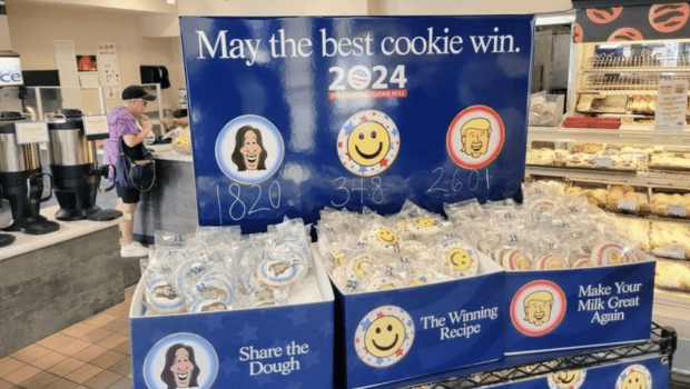 美國大選倒數約40日,俄亥俄州辛辛那提市“布斯肯烘焙坊”(Busken Bakery)以候選人為主題的餅干來預測總統選舉而聞名,堪稱“美版章魚哥”,過去40年來幾乎精準命中每一場大選結果,而目前結果顯示,美國前總統特朗普支持率大勝副總統哈里斯15個百分點。