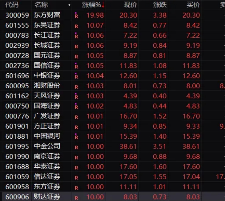 罕見:券商股盤中全部漲停