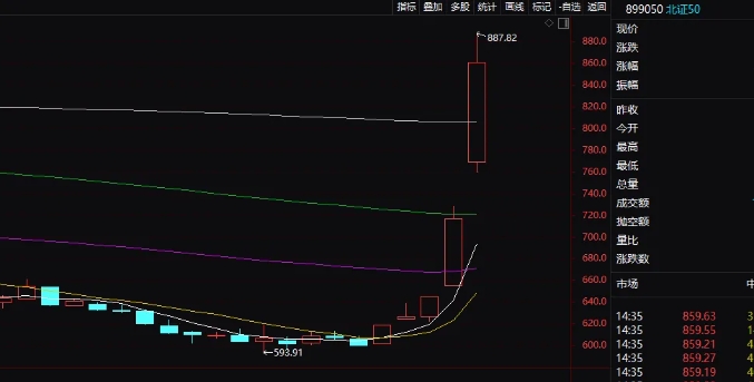 北證50指數盤中漲幅一度超過23%,亦創出歷史最大盤中漲幅紀錄。