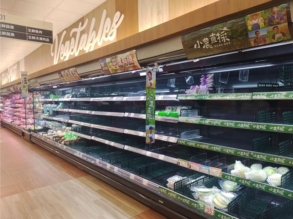 ▲不少人一早到連鎖超市買菜,發現貨架被掃光。