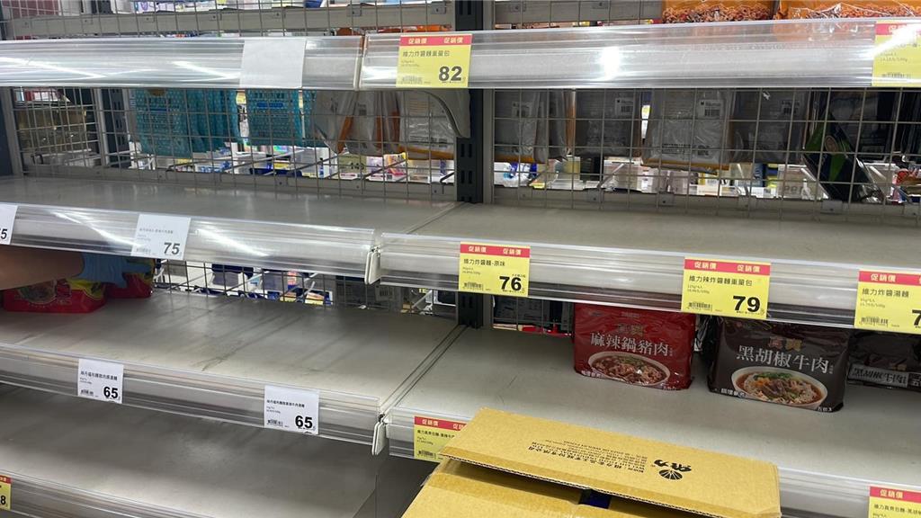 不少人一早到連鎖超市買菜,發現貨架上的青菜、泡面等都被掃光,有民眾轉移陣地,到一般的雜貨店,買到所剩無幾的泡面,直說“超幸運!”