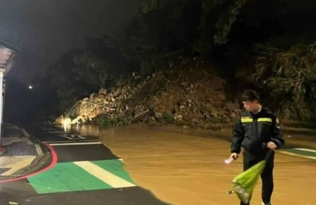 基隆地區凌晨持續強降雨,附近住戶凌晨突然聽見“轟隆轟隆”聲響后,山坡上大批土石瞬間崩落,位置就在海中天社區前方道路,樹木夾雜黃泥傾泄而下,道路旁汽機車瞬間也遭到埋沒,居民嚇得立刻報警。