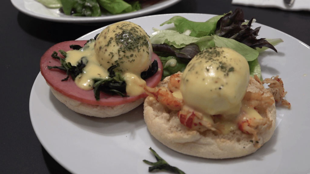 ▲主辦方亦有安排早餐時間,主食有兩款選擇,,包括班尼迪蛋和炸雞窩夫。