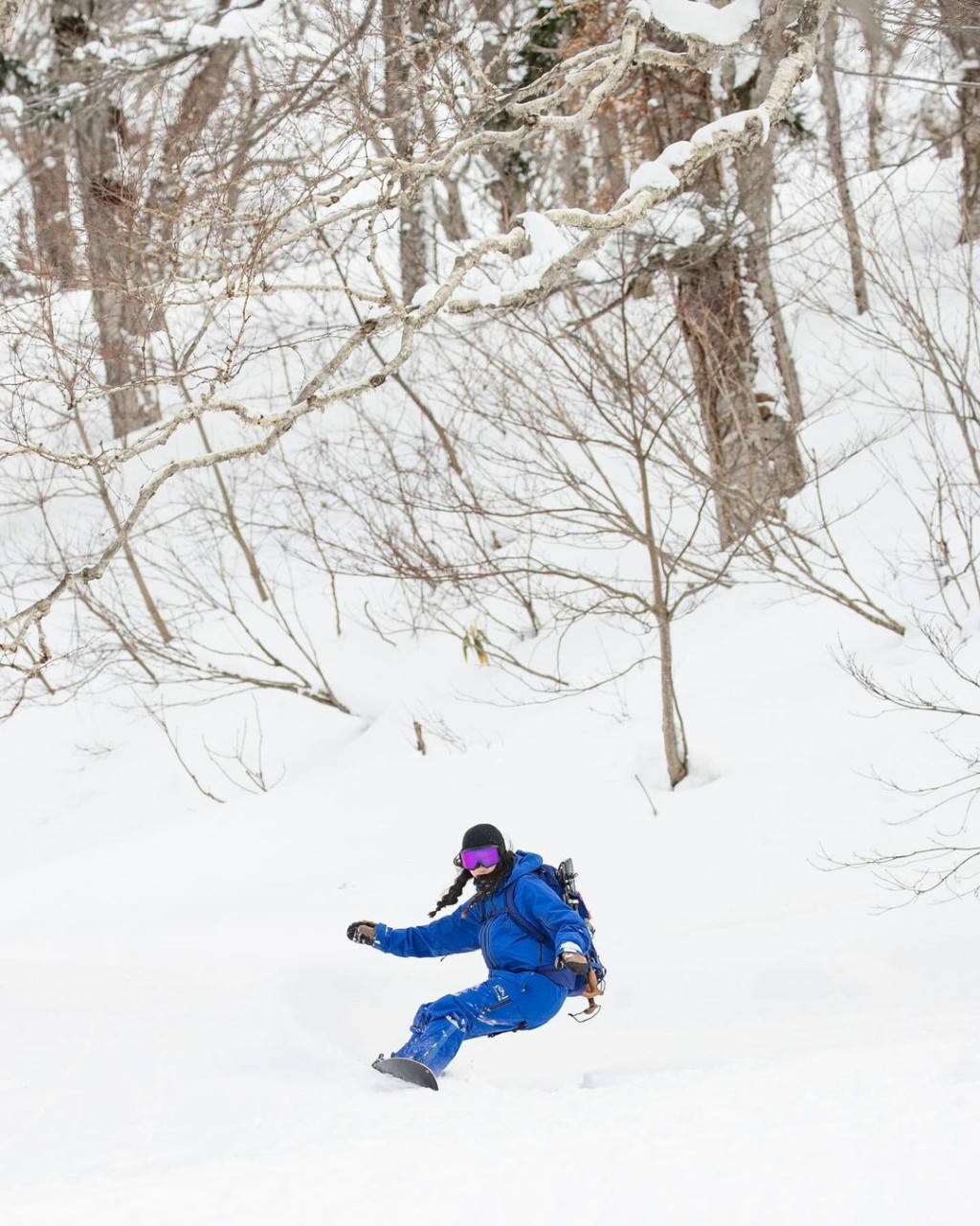 ▲陳康堤穿上一身藍色滑雪服,在雪白的滑雪道上自由舞動,滑行時的轉彎動作顯得十分輕松自如。