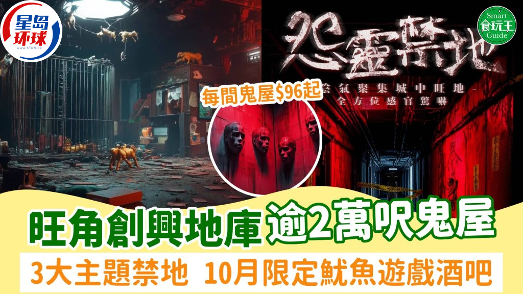 萬圣節少不了恐怖鬼屋體驗,除了各大商場及主題樂園活動外,旺角創興廣場地庫于10月期間,設置3大主題禁地鬼屋讓大家試膽。鬼屋分成3大區域,包括恐怖玩具店、水系元素鬼屋以及漁村世界,現場設置期間限定魷魚游戲主題酒吧,讓大家逃出惡怖鬼屋后好好慶祝一番!