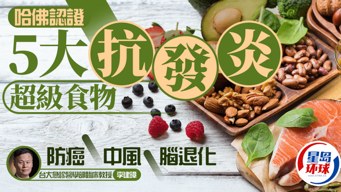 臺大急診醫學部臨床教授李建璋在節目《健康云之道》表示,哈佛醫學院于2024年3月公布的研究報告指出,有5類食物有機會增加身體發炎的風險,不過亦有5種抗發炎的超級食物。