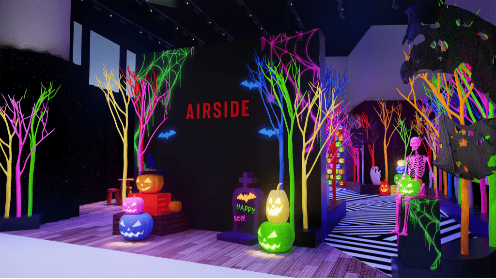 AIRSIDE于今年萬圣節聯同“港鬼故”、“Mental Bread@港式情侶”,推出全港首個沉浸式鬼屋劇場殺《鬼域寨城》。鬼屋分成5大區域并以地寨為主題,大家想盡辦法逃出生天之馀,更要于于如同迷宮的城寨內尋找鬼魂了解線索,找出“女廁靈異事件”的兇手及真相。除了鬼屋之外,AIRSIDE更為小朋友特設“迷幻夜光樂園”,現場設有不同夜光南瓜,最適合為盛裝打扮的小朋友打卡。AIRSIDE于萬圣節正日晚上舉行“Canton Disco Night”,請來尹光擔任表演嘉賓,大家屆時換上城寨主題服飾參加派對狂歡!