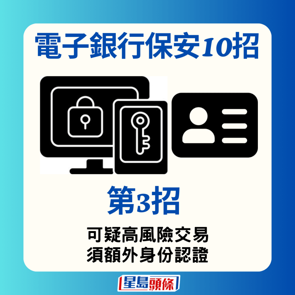 金管局向銀行發出通告指,為加強防騙措施,發卡銀行應與卡計劃營運商合作,要求使用手機銀行應用程序的客戶,透過預設綁定裝置來驗證網上信用卡交易,取代使用短訊(SMS)發出一次性密碼(OTP)作驗證。銀行需于今年底前落實有關措施。
