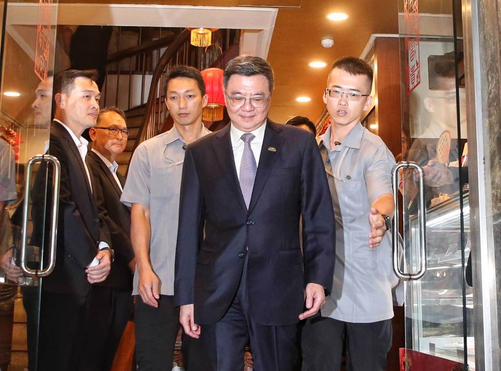▲朝野“和解飯”11日登場,協調總預算卡關問題,經一個半小時餐敘后,“行政院長”卓榮泰(前中)步出餐廳。中時新聞網