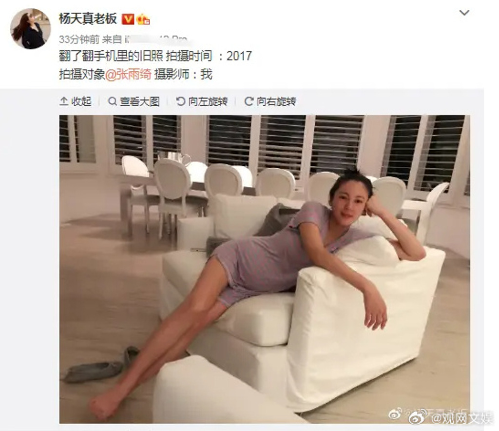 ▲張雨綺過去也被傳出代孕,當時她的經紀人楊天真公開了張雨綺的孕肚照辟謠。 (圖/翻攝自微博)
