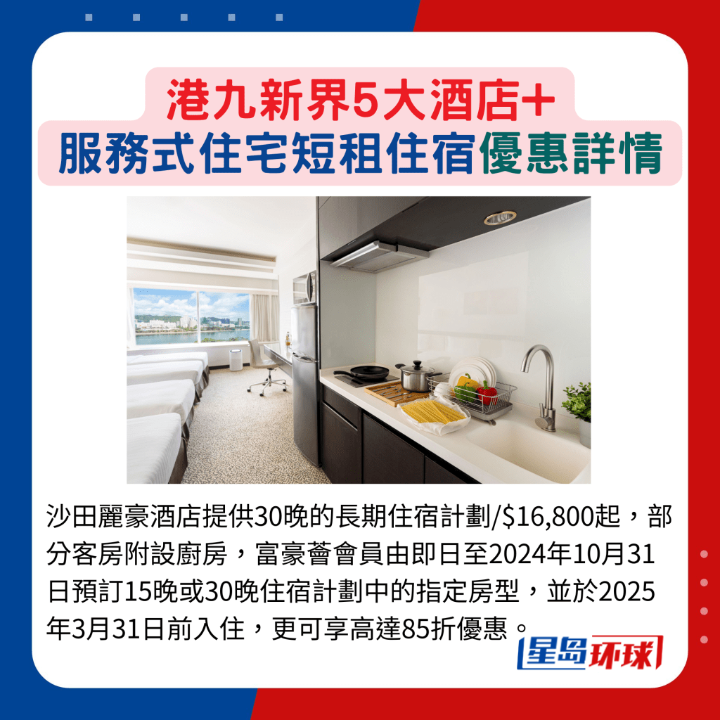 沙田麗豪酒店提供30晚的長期住宿計劃