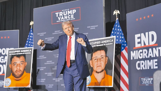 ▲數據科學家依據博彩網站賭注合約數據最新預測,共和黨總統候選人特朗普目前將獲得304張選舉人票。圖為特朗普11日在科羅拉多州競選集會上跳舞。(美聯社)
