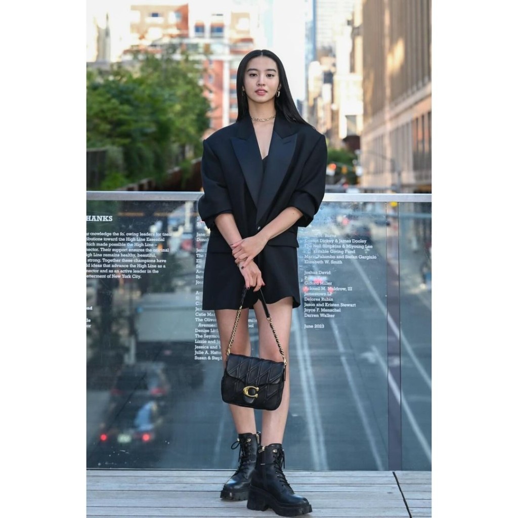 ▲木村光希以Oversize黑色西裝褸造型,襯以厚底綁帶短靴,展露美腿又塑造干練型格。(圖片來源:IG@koki)