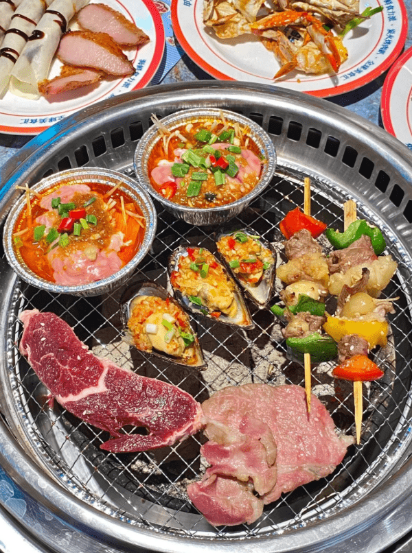 “煙火碼頭海鮮Bazaar自助”占地逾3,000呎,可讓500人同時用餐,環境非常闊落。每張桌更設有炭火烤爐及電磁爐,既可燒肉又可以打邊爐?,F場提提超過500款美食,分為不同的美食區,包括鮮活海鮮、炭火原切烤肉、鐵板燒、燒烤、日本料理、火鍋涮肉、現烤芝士海鮮、粵式熟食、蒸點燉盅、水果、甜品等。當中推薦的就有現撈活蝦、蜆、蟶子、海螺,以及高壓鍋生蠔、澳洲和牛、鮮切潮汕牛肉、佛跳墻、現炒酸奶等,無論是燒烤、火鍋、鐵板燒也相當吸引!水果、甜品及飲品區亦不失色,每區都有數十款選擇,猶如去了另一個超市般,難怪有網民稱在這裡用餐是“超霸氣”、“吃完真的要扶墻而出”。