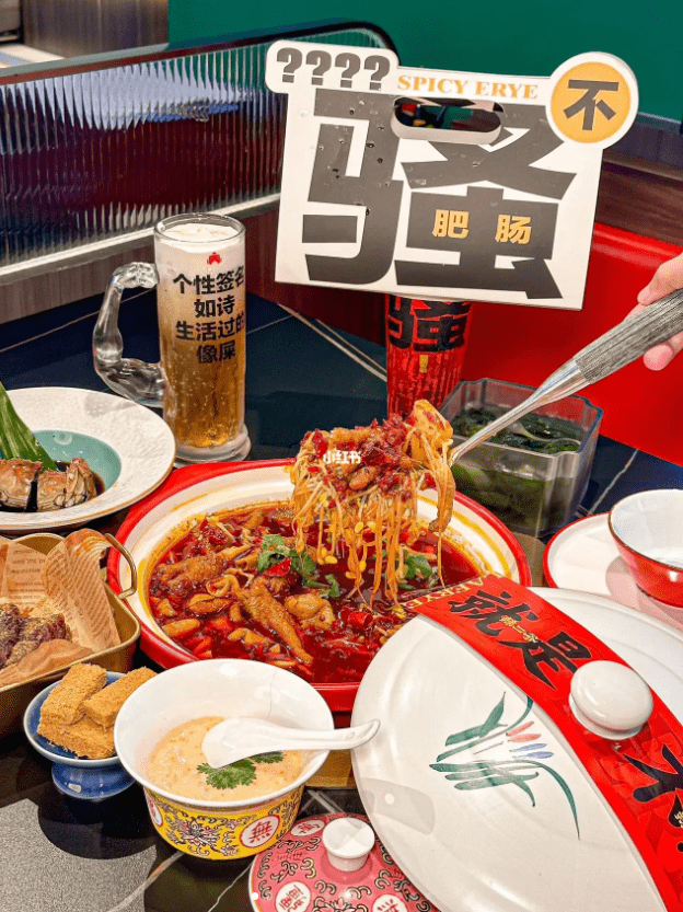 川菜店“辣二爺?肥腸爪爪”主打肥腸爪爪,滿滿一鍋的肥腸及雞腳,牛油鍋底越煮越香,肥腸及雞腳煮得入味軟糯。另一道招牌是紅酒醉蟹,香甜鮮美,每啖蟹膏都是極致滋味。飲品也不馬虎,魔法黃油啤乍看是普通啤酒,但其實是濃厚厚的芝士奶蓋加水果鮮啤,配香辣美食一絕,難怪成為深圳東門人氣川菜店!