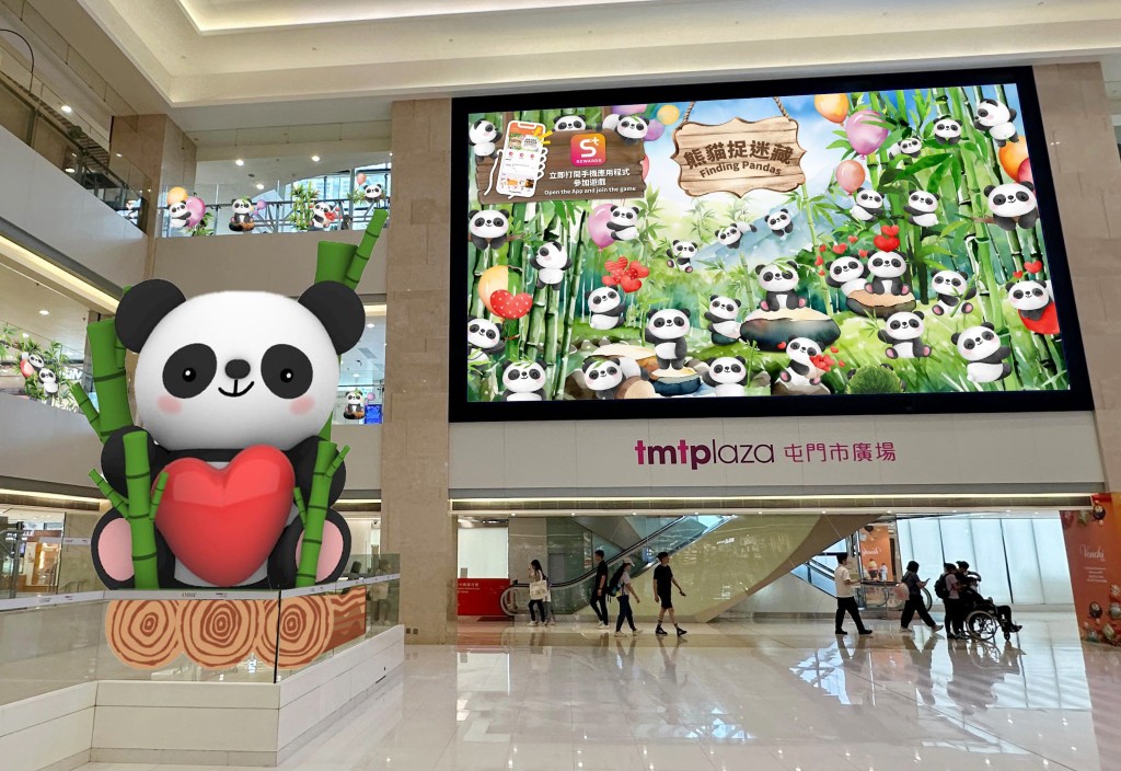 屯門市廣場擺放7.5米高巨型毛毛充氣熊貓,帶同它們最愛的竹子,成為有趣場景,正好讓大家一同前來感受熊貓的愛與祝福。 大電視于每日特定時間將會開始“熊貓捉迷藏”互動游戲,顧客可以透過手機應用程序答中問題,即有機會獲得熊貓造型禮品、香港富麗敦海洋公園酒店餐飲券及商戶優惠券等。
