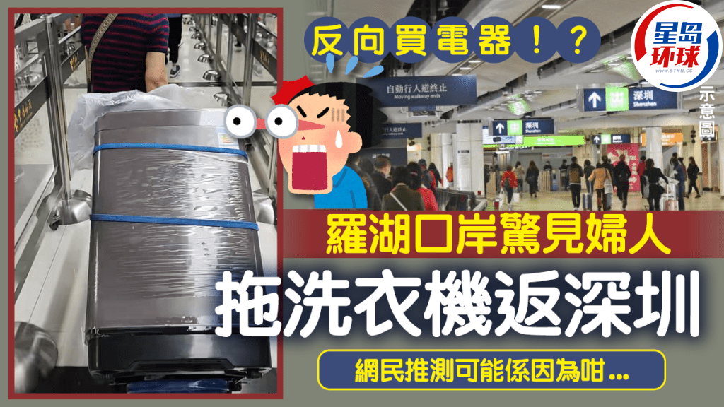 內地物價普偏較香港便宜,近年來吸引不少港人北上深圳掃平貨,然而,近日有小紅書網民分享她羅湖口岸過關時,竟遇見婦人反向購物,單人匹馬將大型電器洗衣機從香港帶回深圳,引起中港兩地網民熱烈討論,齊齊“神探上身”推測背后原因!