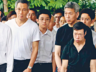 李顯龍、李顯揚、李瑋玲二〇一五年攝于李光耀的喪禮。