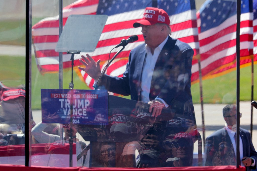 ▲特朗普在關鍵搖擺州威斯康辛州造勢大打經濟牌。路透社