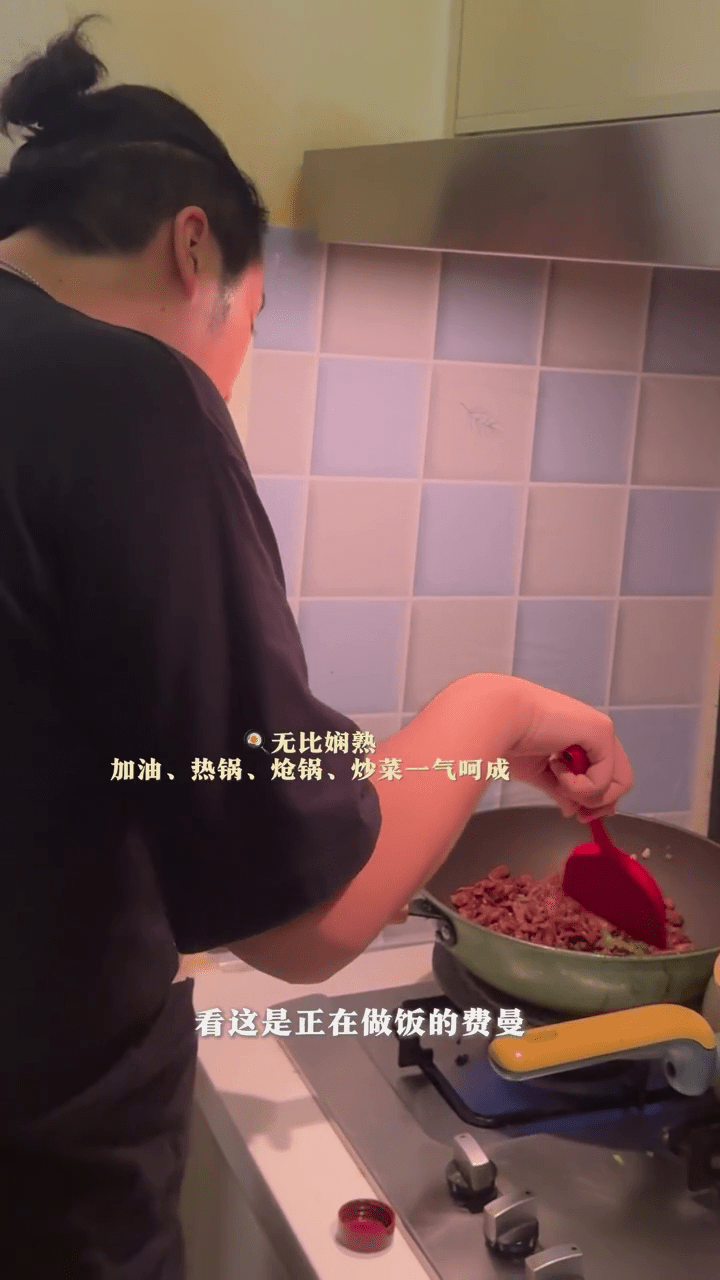 ▲吳費曼到訪女方家中后,更大展廚藝。