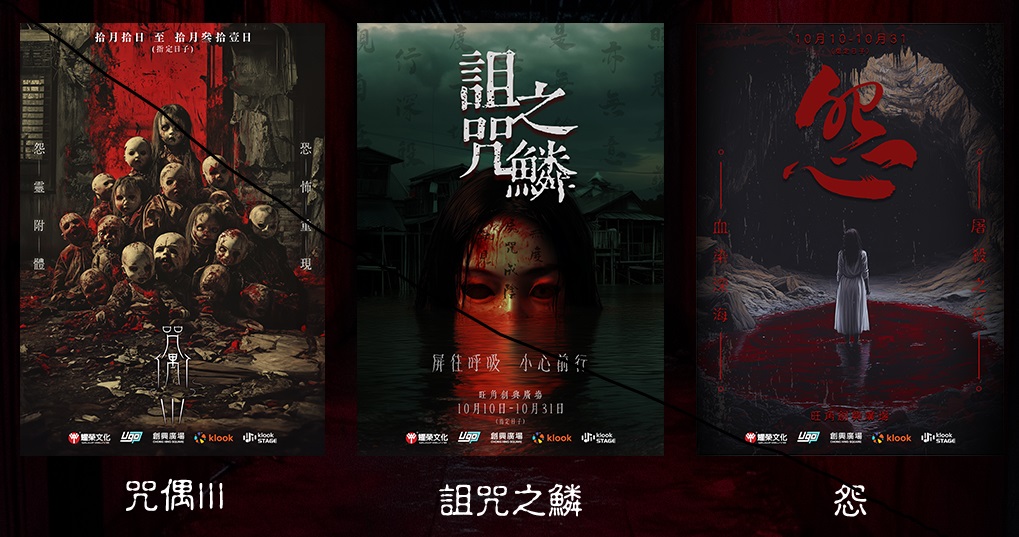 旺角創興地庫的鬼屋占地逾2萬呎,一共設置了3個禁地主題,分為玩具店《咒偶III》、水系元素鬼屋《詛咒之鱗》及漁村世界《怨》,共有9大關卡。探靈者于恐怖環境下逃出生天,并找到繼續推進故事的密碼。由于《怨》為另外兩間鬼屋的延續,所以必須完成其馀兩個鬼屋關卡,才可以通往《怨》的故事世界。3間鬼屋套票售$288,換言之平均每間只需$96,非常抵玩!除了3大驚栗鬼屋外,同場還于10月設有期間限定魷魚游戲主題酒吧,大家不妨裝扮一番前往感受萬圣節“扮鬼扮馬”的氣氛!