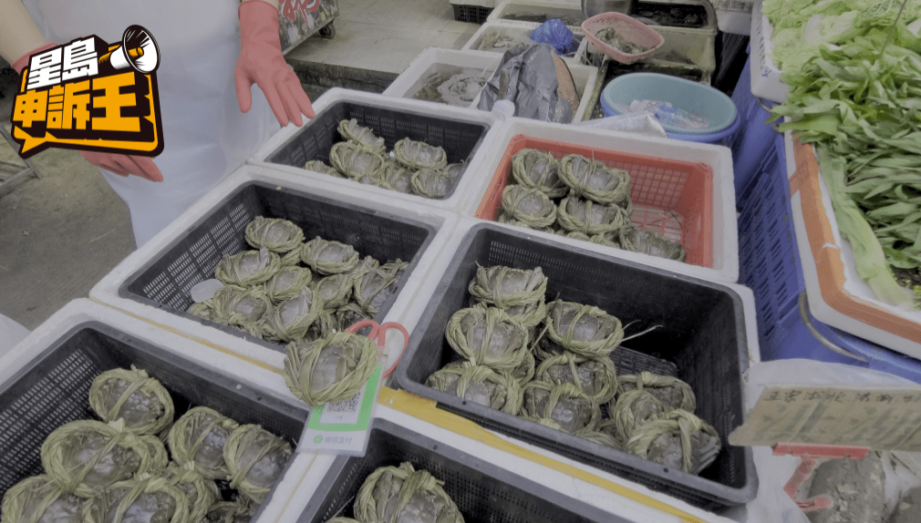 蟹價低處未算低,其中一檔的蟹價低至100元人民幣有10只,平均10元一只。雖然蟹身明顯較細,僅2.8兩,但檔主表示大閘蟹是自己從江蘇產地直接進貨,更擔?!安缓贸钥梢酝隋X”,又稱每只蟹也有“認證戒指”,只不過自己“嫌麻煩”才沒有別到蟹鉗上,如主持需要大可“隨蟹附送”。
