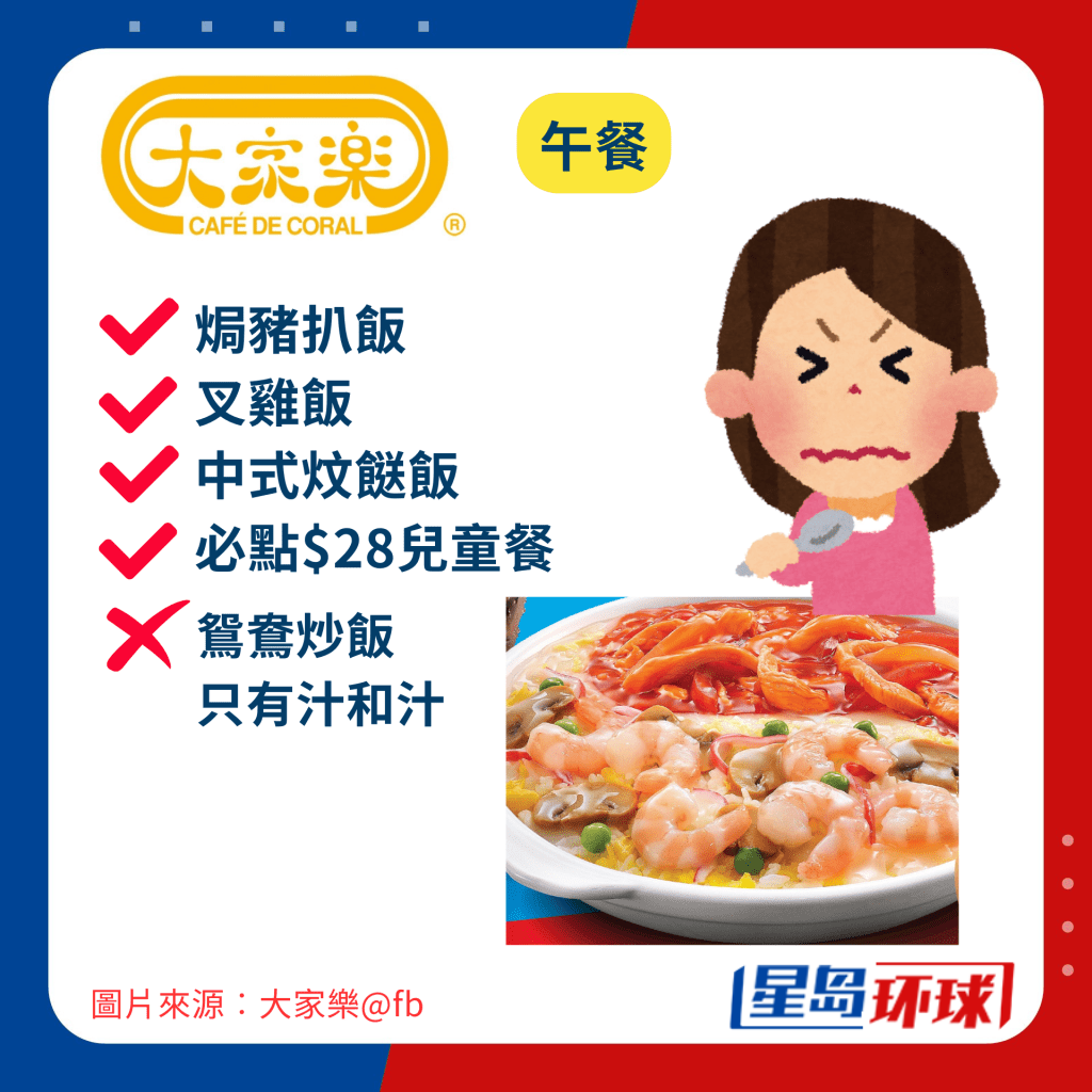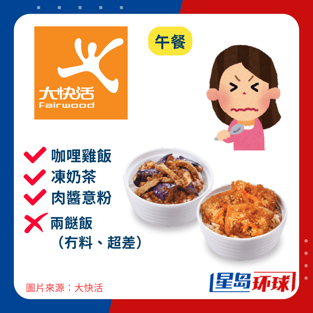 他們亦欣賞大家樂吃??纱虬?,不浪費且不收盒錢,更讓他們覺得其余3間本地快餐店,包括大快活、一粥面及美心也各有千秋,于是決定以用家角度及親身經驗,點評這4間餐廳的“必點”及“中伏”食品。