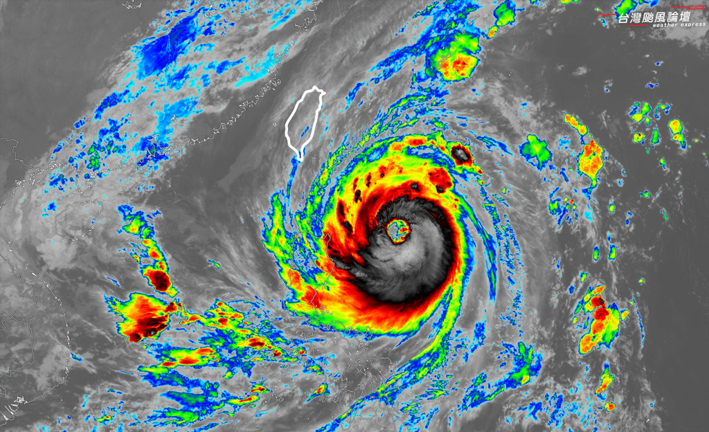 康妮迅速整合,增強為中度臺風上限,持續朝西北方向前進,預估周四將從臺東登陸,康妮特征為特大的暴風圈以及碩大的臺風眼,對此氣象粉專表示,康妮的大眼已經開始緊縮,代表持續增強中,即將挑戰巔峰。