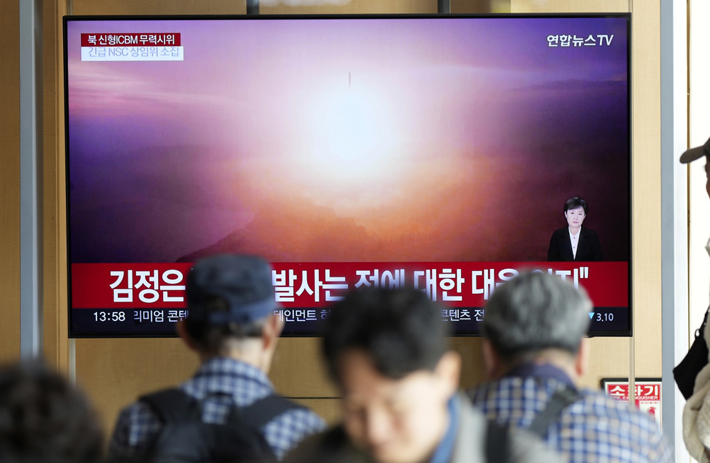 圖為韓國媒體31日報導北韓試射洲際彈道導彈。