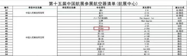 ▲珠海航展中國空軍參展戰機名單出現“殲-35A”